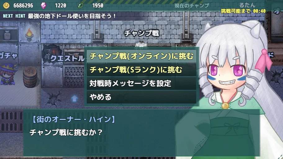 貴方にドールを与え、この町のチャンプを目指すよう促すが、その目的は不明。