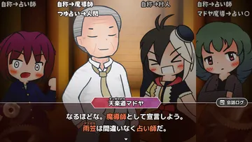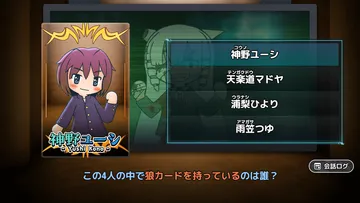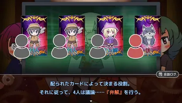 プレイヤーは 4 人のキャラクターたちの議論を第三者の視点で聞き、誰が狼カードの持ち主かを推測、指摘します。狼を見つけ出し、その正体を暴くチャンスは 1 度きり。議論中の会話からヒントを見つけ出し、どのキャラクターが狼カードの持ち主かを推理するという、まるで人狼ゲームの実況動画を見て狼役を当てるようなプレイ体験を提供します。