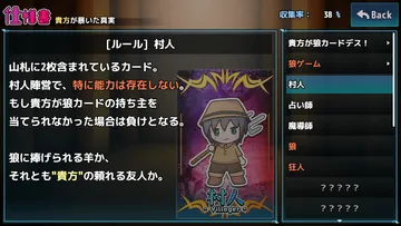 デスゲームを繰り返すことで、プレイヤーは『仕様書』を収集できます。この『仕様書』には、狼ゲームのルールやキャラクターたちの背景、彼らが狼ゲームに巻き込まれる経緯が記されています。これらの情報を集めることで、プレイヤーはデスゲームの謎を一歩ずつ解き明かすことができます。