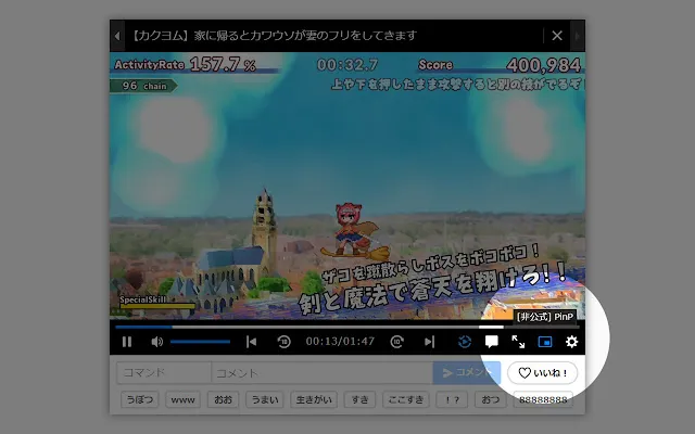 ニコニコ動画およびニコニコ生放送の動画をコメント付きでPinP(ピクチャーインピクチャー)表示する非公式拡張機能です。