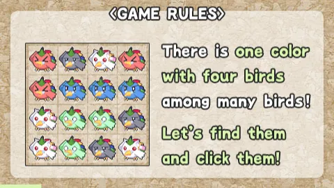 This is a moment puzzle game where you find the 4 birds one after another and aim for a high score.